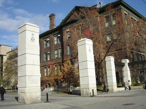 2004/11/05 今日も天気は晴れ。 でもやっぱり風は冷たく耳がちぎれそう。 お宿のすぐ目の前にあるトロント大学。 こーーんな大きい門柱なのに一番上になんかのかってる???よく見たらカボチャだ。一体どうやってこの上にのっけったんだろうー。これもハロ…